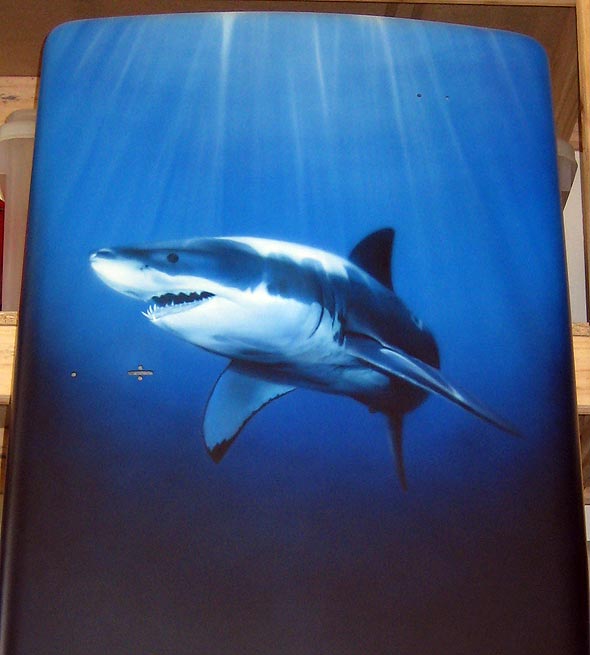 Read MoreCompleted, photo realistic surfboard spray (airbruhed) in automotive basecoats. A steamy tropical scene of a perfectly formed – yet formidable righthand barrel – breaking over a shallow coral reef. Put together as a commission for the owner of the OME company.